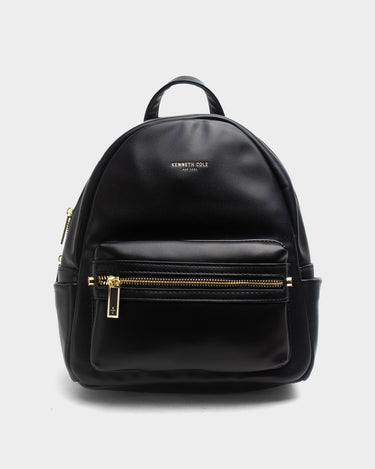 Mochila para mujer mina de cuero vegano, elegante, con múltiples bolsillos y herrajes dorados, ideal para cualquier ocasión.