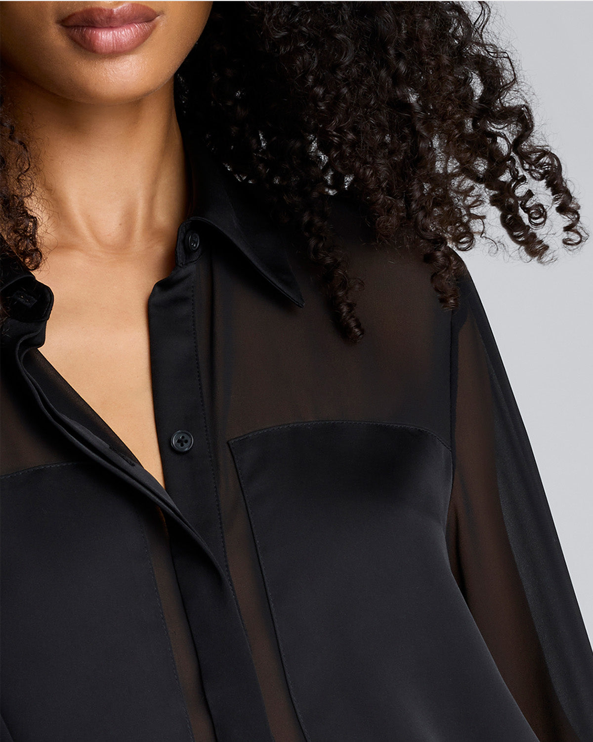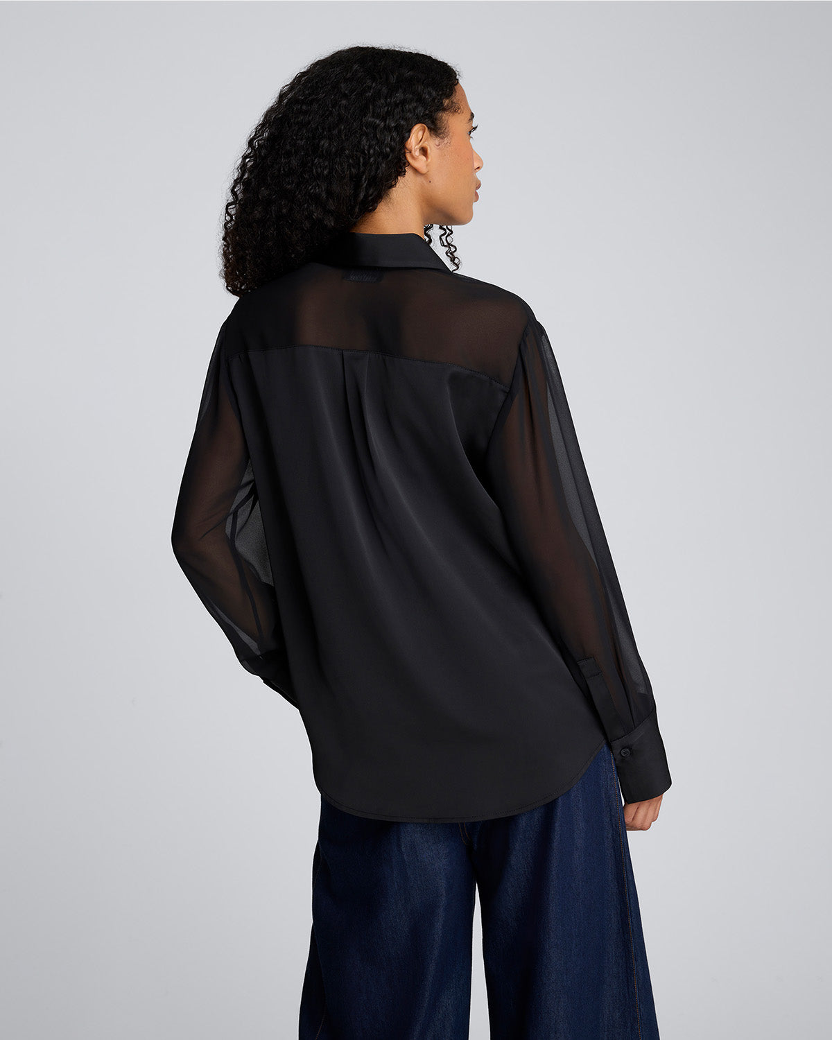 Camisa manga larga con canesú y mangas transparentes para mujer